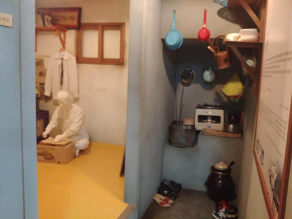 체험관은 입구부터 달랐다. 좁다. 일반 주택을 개조한 것 같다. 1층 기획전시관, 2층 상영관, 체험방은 반지하에 있다. 구로공단 노동자들이 살았던 방은 쪽방이며 벌집이라고 불렀다. 체험관으로 개조된 이 집도 원래 벌집이었을 것으로 보인다. 반지하 긴 복도 양쪽에 작은방이 줄지어 있다. 몸을 누일 수 있는 방과 손바닥만 한 부엌이 다닥다닥 벌집처럼 붙어있다. 화장실 세면장은 공동사용한다. 성냥갑 속에 와 있는 기분일 것이다. 순이의 방은 희망의 방, 문화의 방, 봉제의 방, 공부의 방, 생활의 방이다.