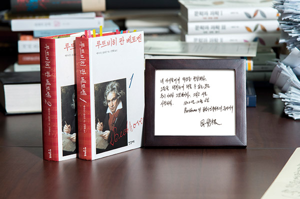 ▲<루트비히 판 베토벤> 1, 2권과 전호근 교수가 직접 적은 메시지.