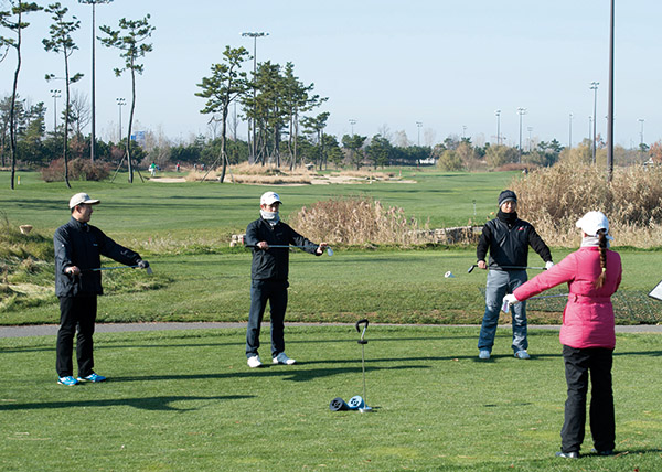 위와 같은 연습을 실행하는 과정에서 코스에서 플레이할 수 있는 기회가 있으면 플레이를 하되 겨울이라는 점을 활용해 플레이를 즐기기보다는 코스에서도 연습하겠다는 마음을 갖도록 한다. 겨울에는 내장객이 많지 않으므로 여유있게 플레이할 수도 있고 덤으로 두세 번 샷을 연습할 수 있는 기회가 있기 때문이다. 물론 도우미의 허용이 있어야 가능하지만 다른 동반자의 플레이에 방해가 되지 않는다면 티 샷을 두 번씩 시도해 한 홀은 좋은 공을 선택하고 또 다른 홀은 나쁜 공을 선택해 플레이해본다. 좋은 공을 선택해 플레이했을 때를 목표로 자신감을 높일 수 있고, 나쁜 공을 선택했을 때엔 파 세이브 능력을 향상시킬 수 있는 기회가 된다.