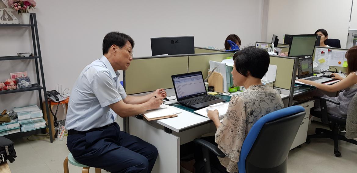 이날은 노정구씨가 50+SE 펠로우인 김순애(사회적 기업 (주)샤인임팩트 근무)씨 모니터링 활동을 수행하는 날로 코디네이터의 실무를 동행 취재할 수 있었다.
