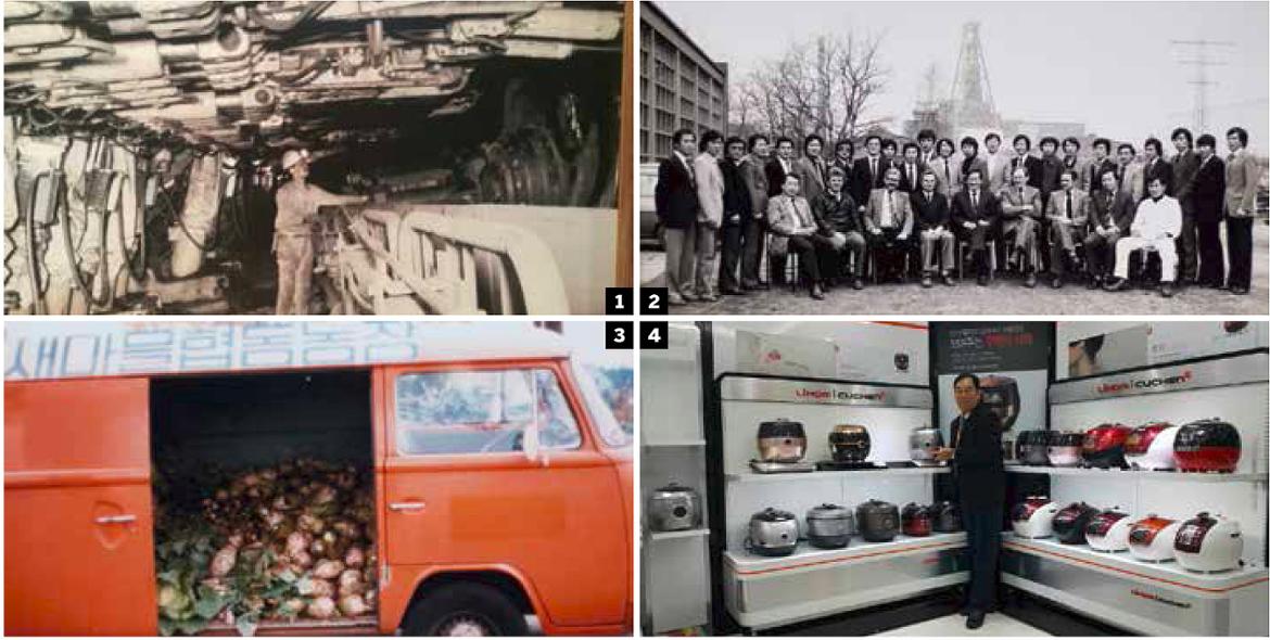 1 당시 독일 탄광에서의 작업 모습. 2 민석기씨와 함께 독일로 떠난 파독광부 동기들.