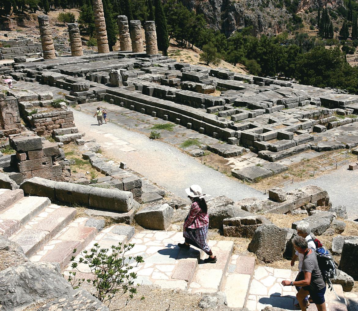 델포이(오늘날은 델피로 불린다)는 BC 8~6세기 무렵만 해도 아테네보다 훨씬 번성한 도시였지만 현재는 작은 시골 마을이다. 길을 묻지 않아도 “뭘 도와줄까?” 하고 말 걸어오는 정겨운 사람들이 있다. 델포이 여행은 서두를 이유가 없다. 느릿느릿 천천히 돌아다니면 된다. 델포이 마을 주변에는 2500여 년 전의 유적들이 흩어져 있다. 유적지는 크게 두 군데로 나뉜다. 산허리를 가르는 도로를 기준으로 위쪽은 신성 지역이고 아래쪽은 김나지움과 마르마리아 유적이 자리한다. 마을에서 쉽게 접근할 수 있는 곳은 신성 지역이다.