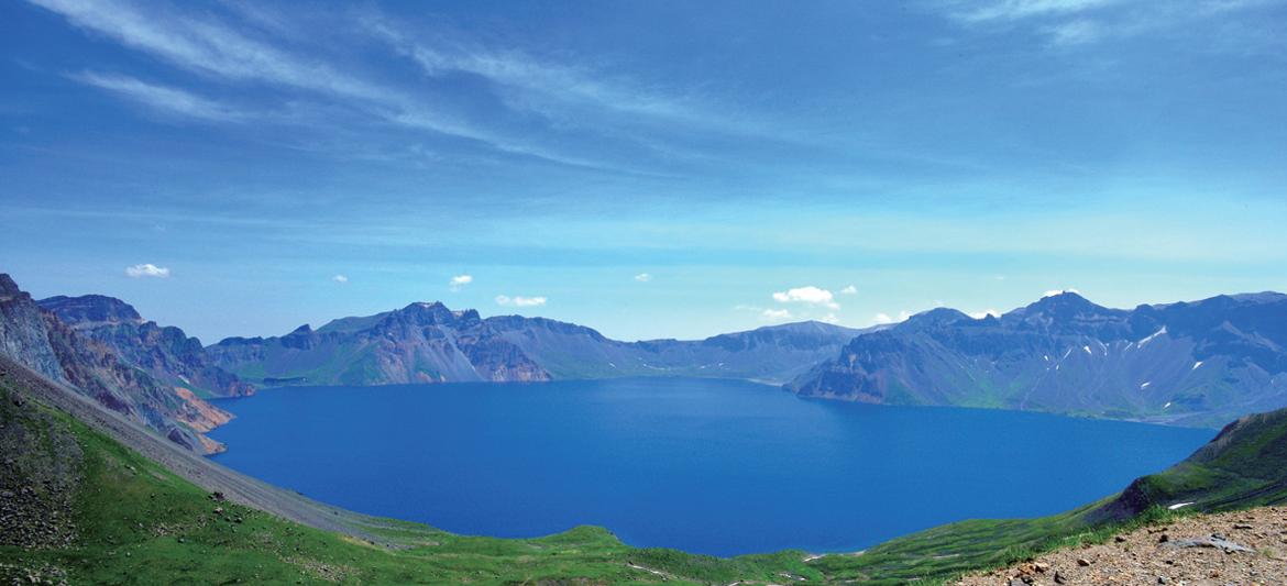 사진2) 2017년 7월 맑은 날, 같은 장소에서 담은 백두산 천지의 모습.