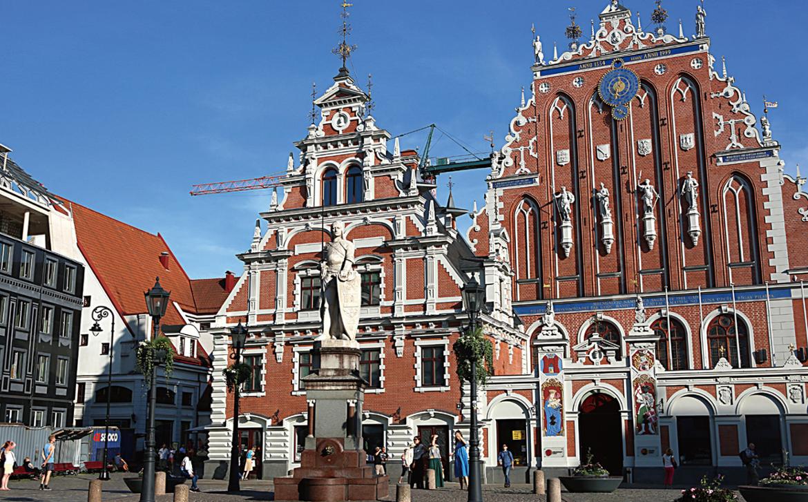 긴 역사의 흔적이 고스란히 남아 있는 골목길. 자꾸만 길을 잃게 만들면서 블 랙헤드 길드 광장 앞으로 안내를 한 다. 이 광장은 리가의 랜드마크로 건물 에 금박이 박혀 있어 금세 눈길을 끌어 당긴다. 예전 상인들의 숙소와 연회장 이었던 건물. 눈길을 끄는 천문시계에 는 처음 주문한 길드가 시계공의 눈알 을 빼버렸다는 전설이 흐른다. 너무 아 름답다는 것을 강조하기 위한 동유럽의 흔한 전설 중 하나다.  그것보다 이 건물의 특징은 블랙헤드 다. 금박 건물에 이들의 수호성인인 성 마우리티우스가 새겨져 있다. 그는 북 아프리카 흑인 출신의 로마 전사였다.  그래서 블랙헤드라는 건물명으로 지칭 된 것. 이 전당은 제2차 세계대전 때 건 물의 80%가 파괴되었는데 라트비아가 재건축(2001년)했다.
