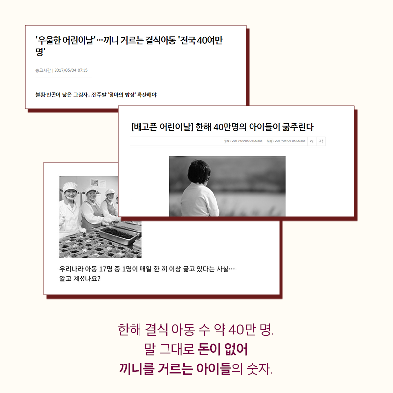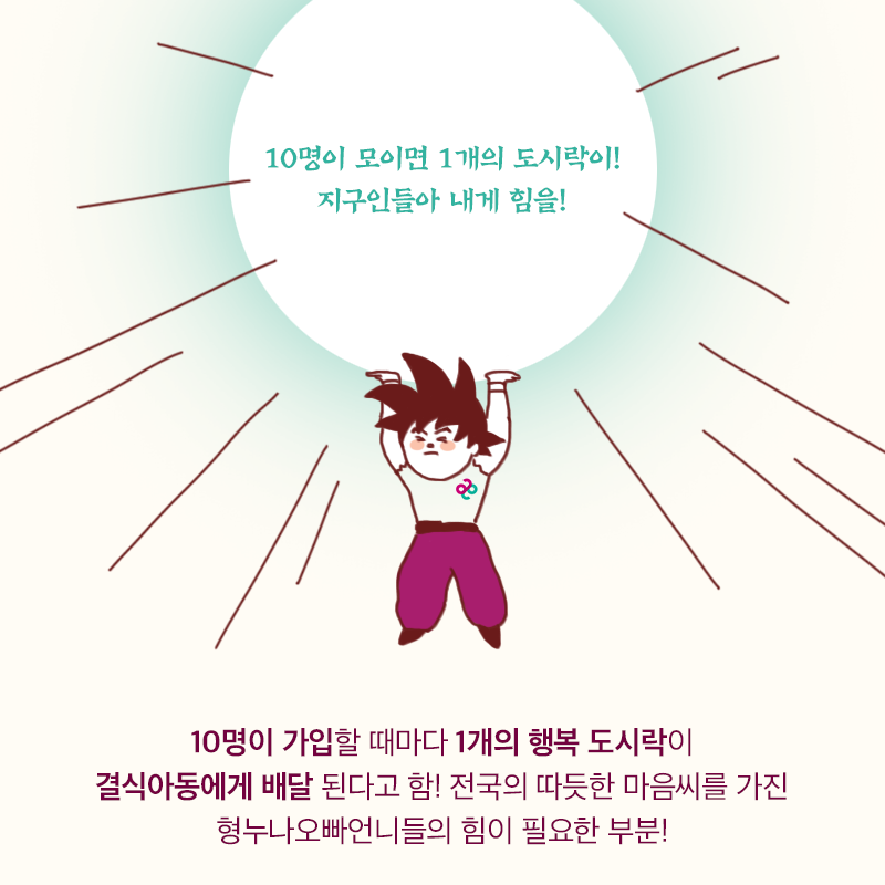 10명의 가입으로 1명의 결식 아동에게 도시락이 배달됩니다.