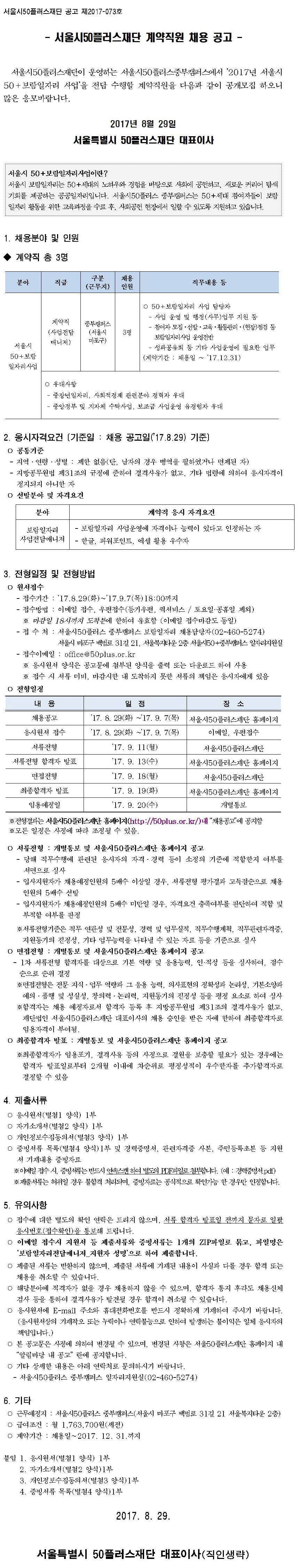 [재단]계약직원 채용 공고