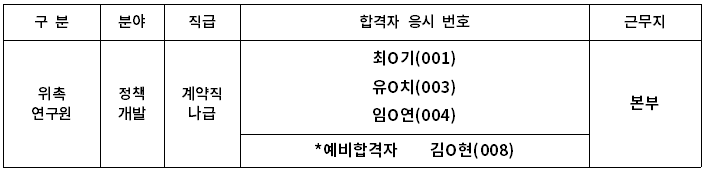 ※ 최종합격자가 임용포기, 결격사유 등의 사정으로 결원을 보충할 필요가 있는