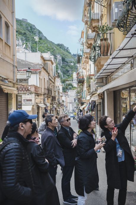타오르미나 중심가인 움베르토 1세 거리는 800미터 길이로 아기자기하고 아름답다. 거리 중간에 있는 4월 9일 광장에서 사진을 찍거나 카페에서 커피를 마시며 대화를 한다. 거리 상점에서 각종 도자기, 기념품, 가죽 제품, 세라믹 제품 등을 판매한다. 정성스러운 가죽 공예품은 사람들의 눈길을 끌었으며, 필자 또한, 구매하고야 말았다.