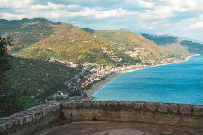 타오르미나는 메시나와 시라쿠사 중간에 위치한 시칠리아를 대표하는 관광지다. 해안에서 204m 고지의 고립된 지역에 지중해를 굽어보며 툭 튀어나온 테라스에 건설되었으며 돌로 세 겹으로 쌓은 요새 도시이다. 좁은 요새지만 많은 인구가 성 안으로 입주하다 보니 건축물 사이의 골목이 좁다. 사방이 기암절벽이요. 대부분 암석으로 만들어진 이 요새는 마치 가파른 절벽 위에 핀 한 송이 청초한 꽃과 같이 아름다웠다.