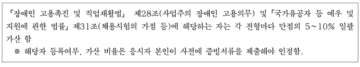 ○ 장애인 및 국가유공자 가산점 특전 (공고일 이전까지 지정된 경우에 한함)