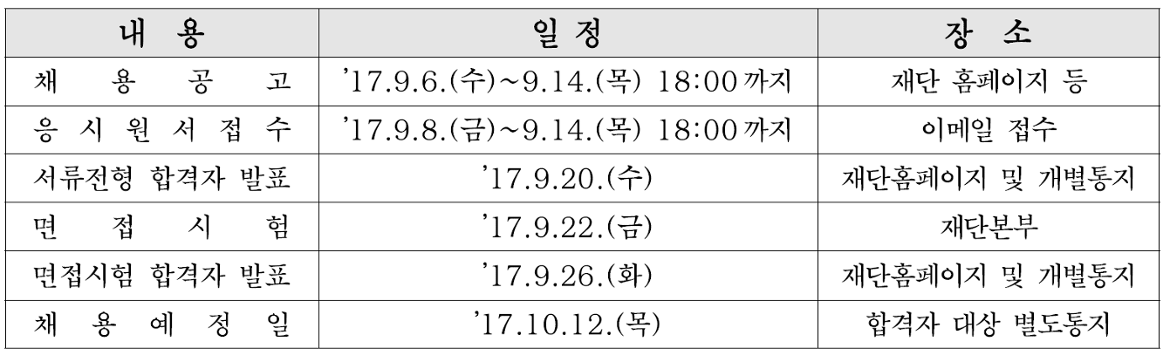- 면접장소 : 합격자대상 통지(서울시 공덕역(지하철 5‧6호선, 경의선, 공항철도) 인근 예정)