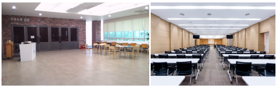 두 곳 모두 스피커와 빔프로젝트 설치되어 모임하기에 적합하고, 홀 입구에 붙어있는 사용일정표에 사용일시와 모임의 내용을