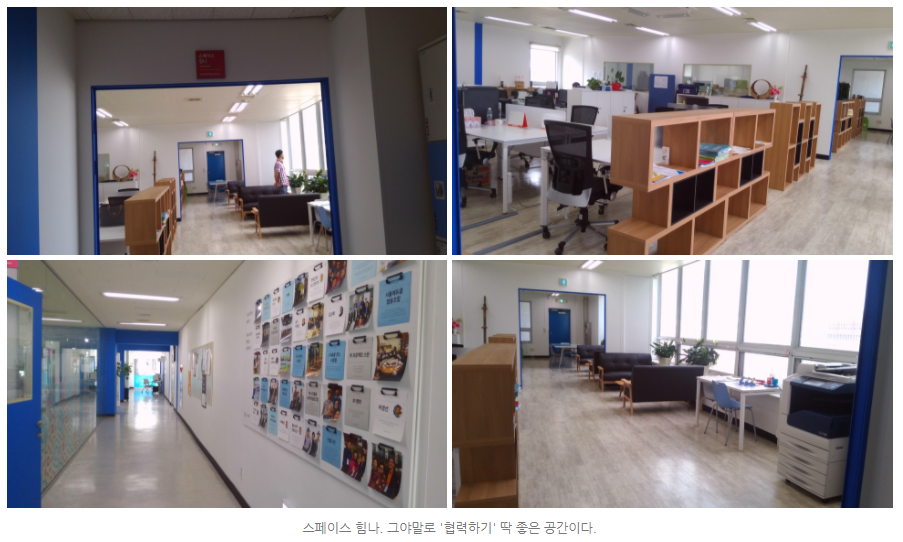 왠지 들어서기만 해도 불끈불끈 힘이 솟을 것 같은 이름의  이곳은 협력, 코워킹을 하는 50+ 들의 공유사무 공간이다.