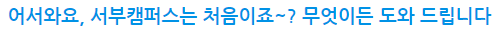 인생 선후배들이 친절하게 많은 당신의 이야기를 들어줄 것이다. 서부캠퍼스의 기초부터 차근차근,