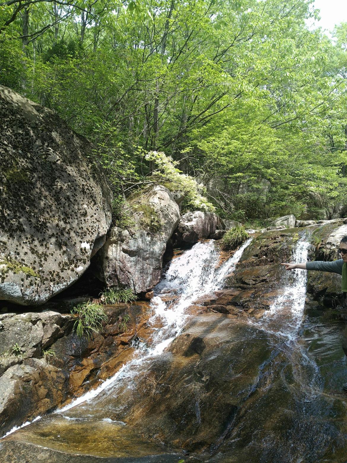 드디어 월출산 산행이다. 산행의 출발지는 금릉경포대(金陵鏡布臺))다. 작은 폭포가 무명베를 펼쳐놓은 듯 하얗다. 금릉은 강진의 옛 이름이다. 나도 몇 년 전 여름, 아이들과 경포대 계곡으로 물놀이를 간 적이 있다. 작고 소박한 계곡이다. 우리는 경포대를 출발해 천황봉을 거쳐 천황사로 하산했다. 출발지에서 바람재까지는 완만한 산길이다. 계곡을 흐르는 물소리가 청아하다. 초록빛 나무들 사이로 피어난 동백꽃이 더위를 잊게 한다. 바람재에 오르니 사방으로 펼쳐진 풍경에 탄성이 절로 난다. 단지 한 시간 남짓한 산행으로 이렇게 탁 트인 전망을 볼 수 있다니 놀라울 따름이다.