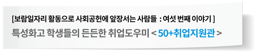 “활동을 하다 보니, 50+취업지원관 활동은 꼭 필요한 활동이란 생각이 듭니다. 실질적으로 기업에 가서 합격할 수 있는 노하우를 많은 학생들이 필요로 할 것이기 때문이죠. 특성화고 뿐 아니라 대학생들, 40~50대에 전직(轉職)을 심각하게 고민하는 이들에게도 기회가 된다면 도움을 주고 싶습니다.”