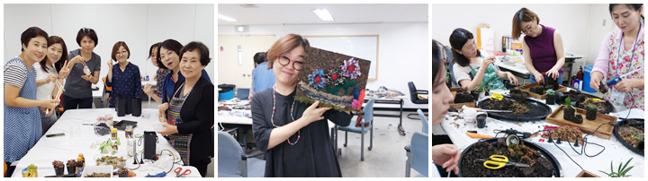육선미 안녕하세요? 인올그린을 운영하는 육선미라고 합니다. 저는 인올그린과 한국아트&가드닝협회를 운영하며 가드닝 관련 교육 사업을 하고 있습니다. 오래전부터 조경 관련 사업을 했었는데, 연계되어 친환경 소재, 신소재를 중심으로 콘텐츠를 만들어 교육하게 된 것이죠. 최근에는 민간자격증을 만들어 아트&가드닝지도사를 양성하고 있습니다.