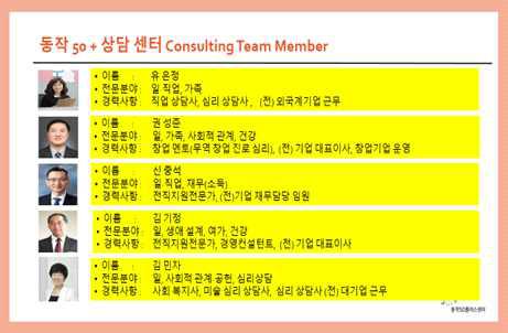 동작 50+ 상담 홍보자료 및 동작 컨설턴트