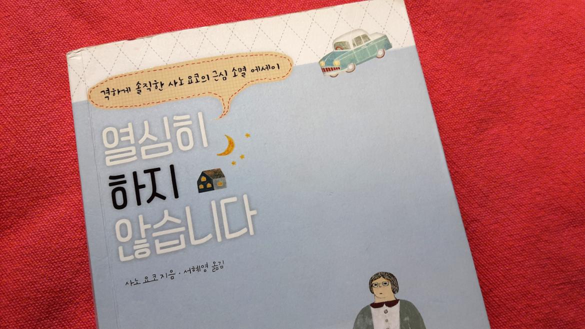 검색창에 열심히 하, 까지만 치면 똑똑하게 자동 완성되는 말은 ‘열심히 하겠습니다’다. 열심히! 라는 말 뒤에는 열심히 하겠습니다, 열심히 합니다. 열심히 했습니다, 라는 미래형, 현재형, 과거형이 이어져야 자연스럽다. 열심히 하지, 까지 치면 ‘열심히 하지 않아서, 열심히 하지 않았다’는 말이 자동 완성되는데, 곧바로 후회한다, 라는 말이 이어질 것 같은 문장이다. 열심熱心, 뜨거운 마음. 심장이 뜨거워짐. 어떤 일에 생각과 정신과 의지를 모두 집중하는 일이란 뜻. 좋은 말이다. 우리는 태어나면서부터 평생을 열심히, 라는 부사로 이어진 말을 들으며 살아왔다. 열심히 공부해라. 열심히 사랑해라. 열심히 살아라. 그런데 이 여자, 사노 요코, 조용히 배짱 좋게 <열심히 하지 않습니다>라는 말을 뱉는다. 열심히 하지 않았습니다, 도 아니고 열심히 하지 않겠습니다, 도 아닌, 그냥 현재형. 지금. 나는. 열심히. 하지. 않습니다.