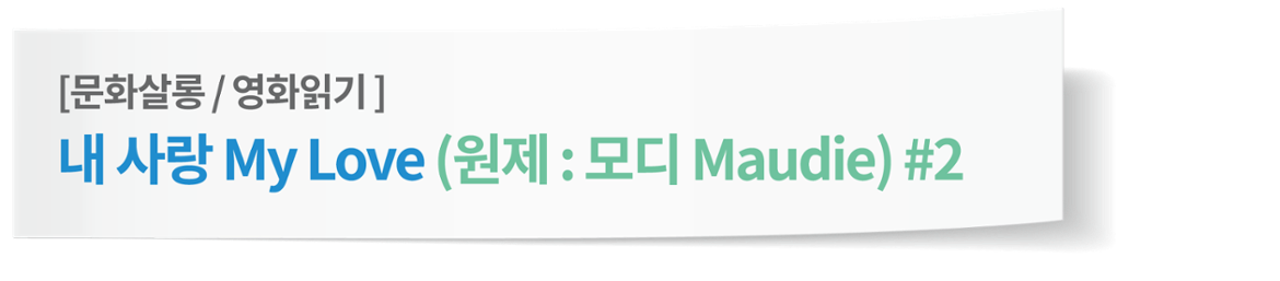 영화 <내 사랑>의 원제는 그냥 <모디Maudie>. 영화 속 주인공 모드의 애칭이다. 모디는 실제 캐나다 최고의 나이브 화가였단다. 나이브 화가?! 통칭 나이브 아트(Naive Art)는 전문적인 미술교육을 받지 않고, 화풍을 나누는 어떤 유파에도 속하지 않은 채 그저 자기 세계의 주변을, 풍경을, 내면을 그리는 예술을 말한다(고 한다). 소박파, 일요화가 등으로도 불리는 일종의 아마추어 화가. 천재 끼로 특출하지 않은, 대작을 그리지 못한, 커다란 캔버스를 사용하지 않은, 거대한 이야기를 담지 않은, 예술가로 대접받지 못한, 아주 유명하지 않은. 새, 나무, 고양이, 숲, 하늘, 개, 닭, 구름 나비 같은 주변의 것들을 조그맣게 취미삼아 그리는 화가를 일러 나이브 화가라 한단다.