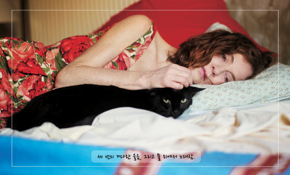 닥쳐오는 이별과 배신, 죽음에도 담담하고 담대하고 이성적으로 대처하는 나탈리도 목석이 아닌 바에야 물론 슬퍼하고 절망하고 소리 없이 운다. 철저하게 혼자가 되어 소리 없이 터져 나오는 통곡을 두세 번 울음 운다. 헤어졌으므로 다시는 갈 수 없는 전남편의 별장에서 25년 동안 손수 가꾼 꽃들을 쓰다듬다 누운 방에서, 위독한 엄마 소식을 듣고 황망한 채 돌아오는 남편의 차 안에서, 낙원 같은 파비엥의 공동체에서 꿈꾸는 아나키스트가 되어버린 사랑하는 제자 파비엥에게 지난 삶을 비판당한 후 검은 고양이 판도라를 껴안은 채 하염없이 그녀는 운다. 평생의 삶이 ‘머리에는 별 총총, 가슴에는 도덕률’ 이라고 떠들어대던 남편이 끝까지 냉담하게 등 돌리고 있을 때, 젊은이들과 어울리며 자유로운 철학의 세계를 유영하는 파비엥이 애인과 웃고 떠들 때, 임종을 앞둔 엄마를 향해 맨발로 종종거릴 때 그녀의 얼굴엔 눈물이 어룽져 내린다. 눈물로 엉킨 그녀의 얼굴 위로 흐르는 음악은 슈베르트의 ‘물 위에서 노래함.’ 물 위에서 노래한다는 것은? 그저 렛잇플로우Let it flow. 흘러가는 것은 흘러가게 두어할 할 뿐. 그 뜻이지 않을까.