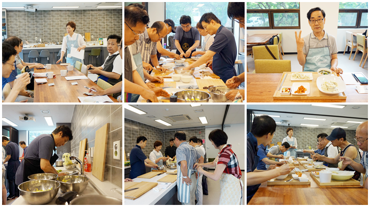 처음에는 남자분만 모인 수업이라 걱정을 했지만, 오히려 연륜들이 있으셔서 제가 실수를 하더라도 유쾌하게 넘어가 주시고 늘 편안하게 대해주셔서 친구 같은 마음으로 즐겁게 수업하고 있답니다. 재료 손질 기초부터 쉽게 꼼꼼히 가르쳐 드리려고 애쓰고 있어요. 특히 여름학기에는 여름 제철에 나오는 식재료들을 많이 활용해 보고 있어요. 직접 요리한 음식을 수강생이 다 함께 모여 맛있게 드시는 모습을 보면 도리어 제가 행복해진답니다.