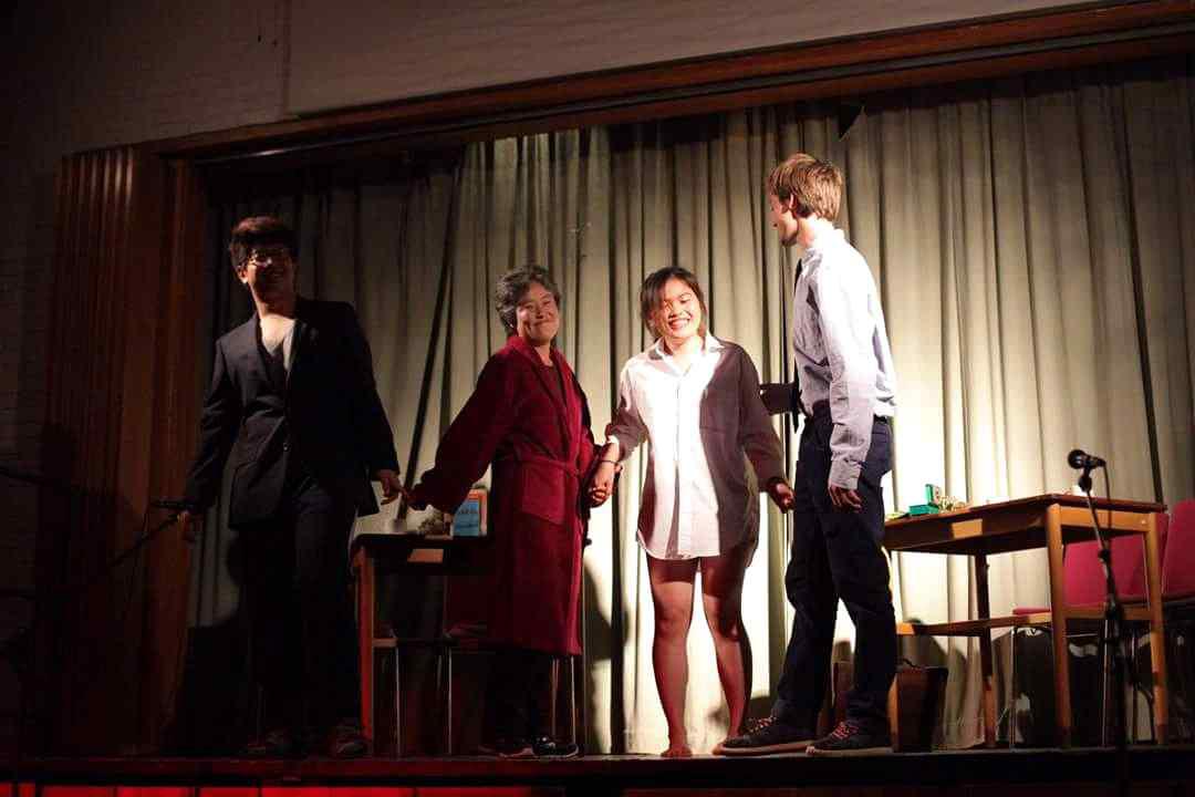 두 번째 공연에서 나는 ‘mirror marriage’ 라는 짧은 극의 나이든 아내 역을 맡았습니다. 일본인 친구가 나의 남편 역이었고 베트남인 여학생 프랑스인 남학생이 함께 팀을 이루었습니다. 소렌은 항상 ‘very good’을 외치며 우리가 개선하면 좋을 점을 이야기해줬습니다. 우리는 소렌의 의견 중에서 받아들일 것과 우리가 하고 싶은 대로 할 것 등을 토론을 통해 정하였습니다. 우리는 수업시간 외에도 따로 만나 연습을 했습니다. 서로 발음도 교정해주고 이렇게 하자 저렇게 하자 의견을 내고 다시하기를 반복했습니다. 지루하고 힘들었습니다. ‘내가 왜 이것을 도전과제로 삼았나?’ 싶기도 했습니다. 드디어 무대에 오르는 날. 내 연기에 집중하자 싶었습니다. 예상치 못한 곳에서 웃음이 터져 나왔습니다. 성공이었습니다. 포기하지 않았다는 점에서, 함께 만들어 나가는 것을 즐겼다는 점에서 또한 성공이었습니다.
