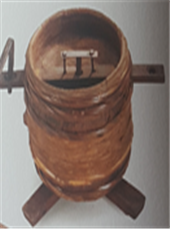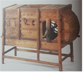 ▲풍구(청에서 전래된 정선용 도구)                                               ▲부뚜 (전래된 정선용 도구)