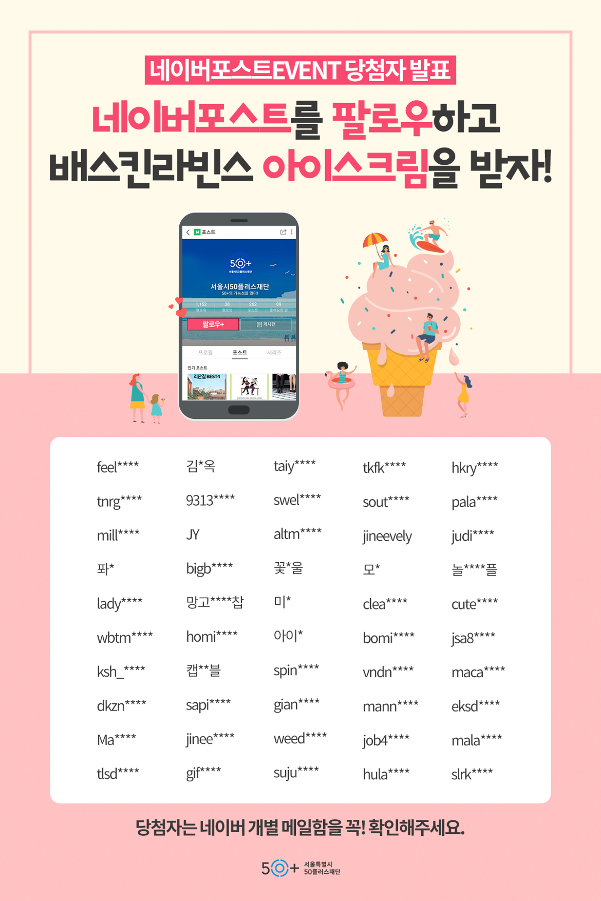 ★'재단 네이버포스트를 팔로우하고 배스킨라빈스 아이스크림 받자!' 당첨자 발표
