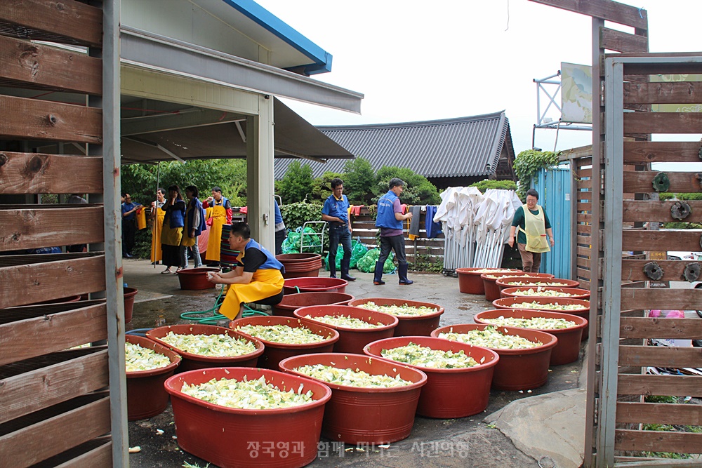 매월 둘째 주 목요일 김치 담그는 날에는 맑고 향기롭게 봉사자들만 모여서 김치를 담그기엔 조금 버거워서 외부 단체에서 봉사 지원이 나온다고 합니다.