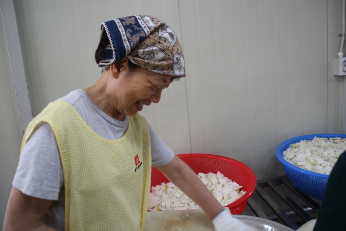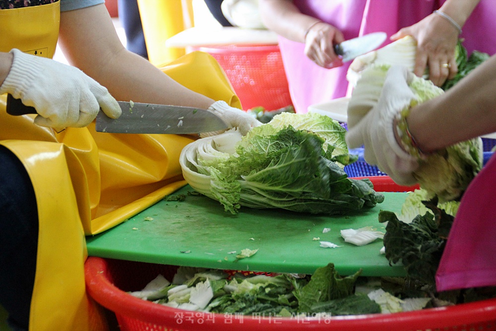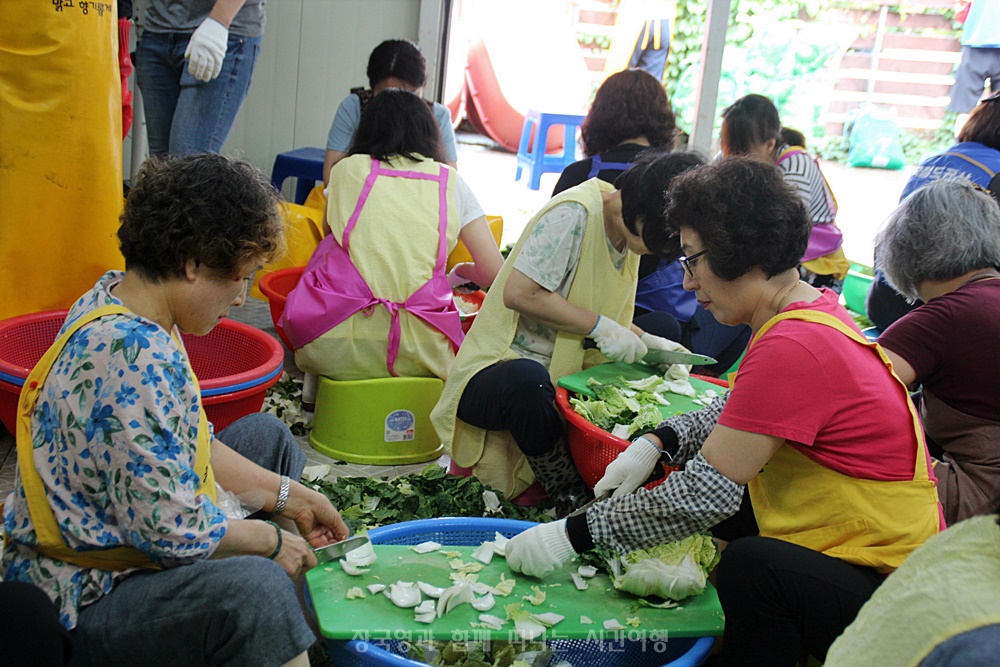 “김치를 담그고 반찬을 만들어 나눔을 하는 봉사자들은 한결같이 마음이 즐겁고 좋다.” 라고 표현을 하고
