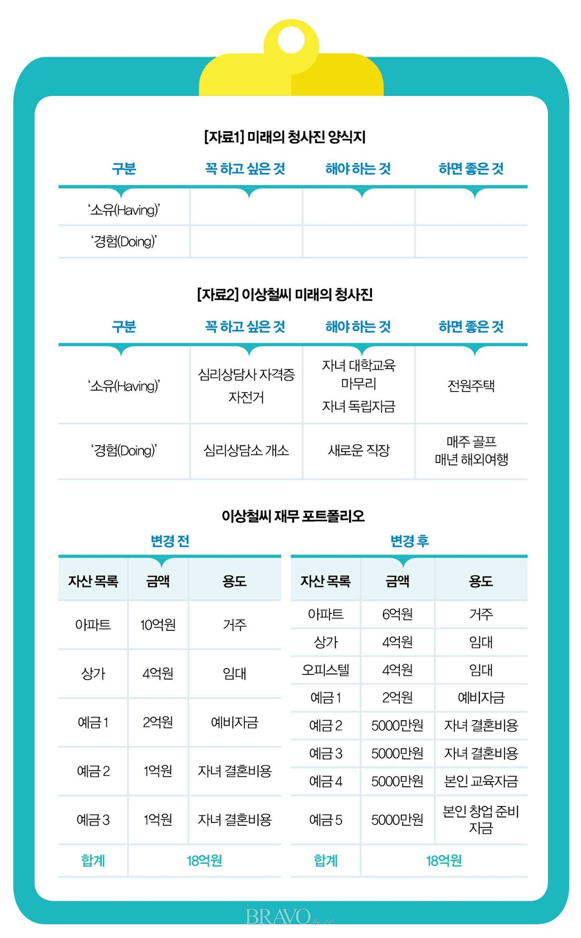 이상철씨가 심리상담소를 개소하기 위한 자격과 경험을 갖추기 위해서는 대략 5년의 시간과 대학원 석사과정을 포함한 교육비가 약 5000만원 정도 소요된다. 그리고 심리상담을 진행할 사무실이 필요하다. 당장 돈이 되는 새로운 직장을 구하는 대신 새로운 직업을 위한 공부를 선택한 이상철씨는 가계의 재무구조와 소비구조를 바꿔야만 했다.