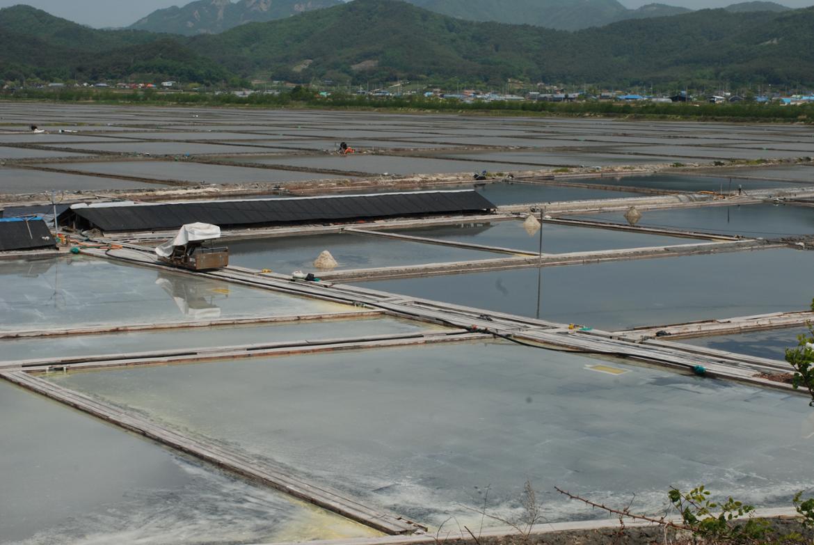 그러나 마지막 두 구간인 7~8코스는 줄포만을 의지하고 사는 사람들의 소금처럼 짜다 못해 힘든 삶의 구석을 보여준다. 대부분 뚝방으로 구성되어 있는 이 길은 갯벌을 막아 만들어졌다. 여기에 처음부터 길이 있었던 것은 아니다. 원래는 드넓게 펼쳐져 있던 갯벌만 있었을 뿐이었다고 한다. 곰소의 염전도 조선시대에는 바닷물을 끓여 소금을 만들던 곳이었으나 일제강점기에 일본사람들이 우리 백성들을 동원하여 바다의 일부를 막아 오늘날의 염전을 만들었던 것이다.
