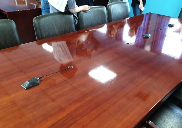T2 회담장 테이블 한가운데 마이크수신기가 장착된 부분이 정확히 군사분계선 지점이다. 그림의 위쪽이 남측 방향이고 T2 회담장내에서는 군사분계선을 마음대로 넘을 수 있었다.