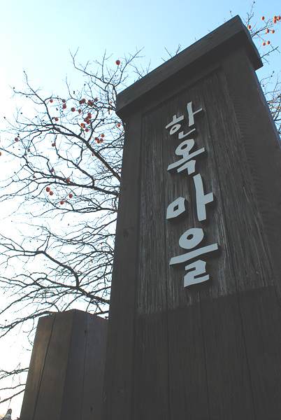 전주 한옥마을 표지                                     한옥의 아름답고 우아한 선이 잘 표현되어 있는 한옥마을. 오목대 전망대에서 내려다 보았다.