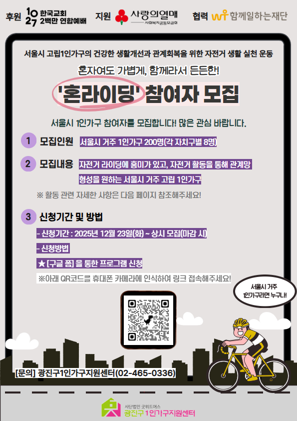 구글 폼을 통한 프로그램 신청 (안내문 내 QR코드 인식 후 작성도 가능)