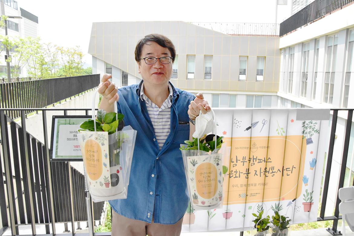 비대면 봉사활동 [50+작은화분 자원봉사단]은 기존의 오프라인 활동과 다르게 집으로 봉사 재료를 배송 받고, 온라인 교육을 통해 정성스럽게 화분을 만든 후 캠퍼스로 직접 가져오시면 남부캠퍼스가 대신 소외된 이웃에게 전달하는 과정으로 안전하게 진행되었습니다.