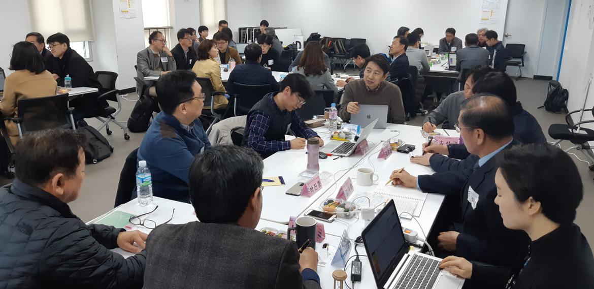 2일 차가 바로 핵심역량강화 교육에 참여할 최종 교육생을 선발하는 워크숍인데요, 보통의 1:1 또는 1:다수 형태가 아닌, ‘월드 카페 토론’ 면접방식을 통해 참여자 서로 간의 생각을 들어보고 토론하는 형식으로 운영됩니다. 조별로 총 5개의 테이블을 돌면서, 테이블별 주제에 대해 토론하고 이야기를 나눕니다. 내 또래의 동료들이 취업을 위해 어떤 준비를 하고 있고, 어떤 생각하고 있는지 들어볼 수 있는 소중한 시간이기도 합니다. 현재 코로나 19로  인해 대면 워크숍을 진행할 수 없어 너무 안타까워요.