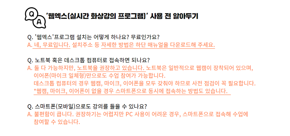 ▶강의 들을 시간이 없다면!? 여기를 클릭해 주세요. [웹엑스(Webex) 기초사용법 안내]