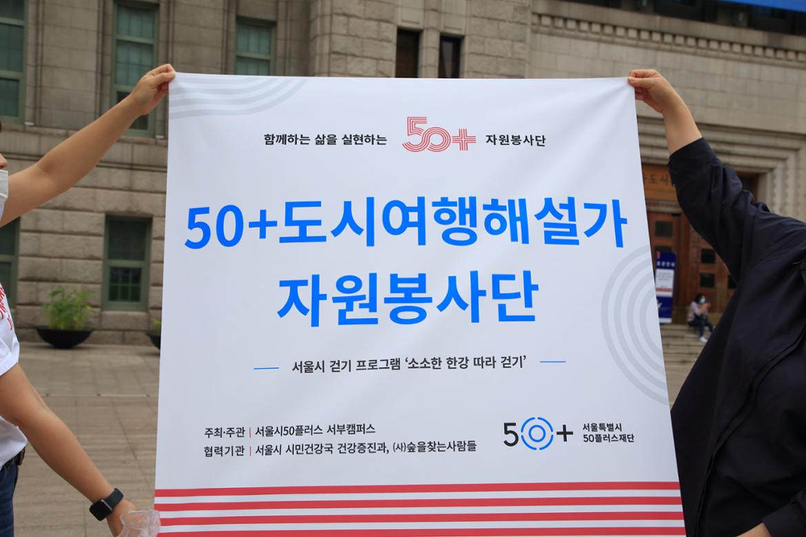현수막을 활짝 펴며 <50+도시여행해설가 자원봉사단> 활동 시작!!