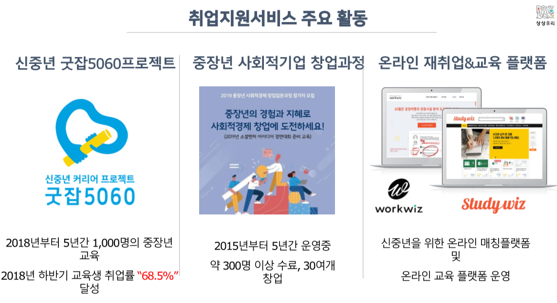 포스트 코로나 시대를 맞아 슬기로운 구직활동이 필요하다. 때맞춰 현대자동차그룹, 고용노동부, 서울시50플러스재단과 함께 신중년 커리어 프로젝트 '굿잡 5060' 프로젝트를 운영 중인  (주)상상우리에서 온라인 코칭 서비스 '워크위즈(www.workwiz.co.kr)'와 실무역량 강화교육 스터디위즈(studywiz.co.kr)'라는 온라인서비스를 시작한다고 해서 (주)상상우리 취업지원팀의 노유진 팀장을 만나고 왔다.