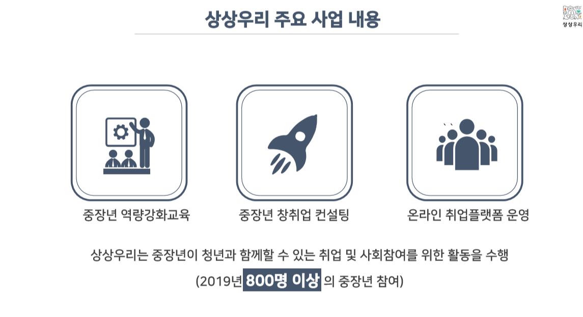 노유진 팀장: <굿잡 5060>은 단순한 5주간의 교육이 아니다. 온,오프라인을 넘어 구직 활동을 위한 서포트를 받으며, 다양한 후속지원 프로그램과 자발적인 커뮤니티 활동을 통해 인생친구를 만나는 멋진 경험을 얻을 수 있다. 할 수 있는 역량도 중요하지만 인생을 다시 한 번 치열하게 살고 싶은, 절실한 분들을 위한 서비스다. 45세부터 60세 이상까지 있다 보니 생계형 일자리가 필요한 분도 있다. 이분들에게 디딤돌 일자리를 제공하고 모니터링을 한다.