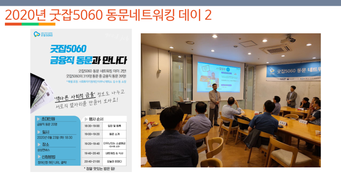 노유진 팀장은 <굿잡 5060> 1기 수료생답게 <굿잡 5060> 프로젝트에 대한 남다른 자부심을 보였다. 실제로 수료생들은 교육을 마친 후에도 동문네트워킹데이나 동문릴레이강연 등을 통해 활동을 이어오고 있다고 한다.