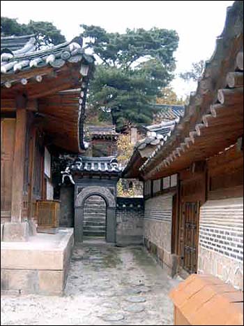 안채(둥근 문 뒤 화계를 통해 별채와 연결된다)