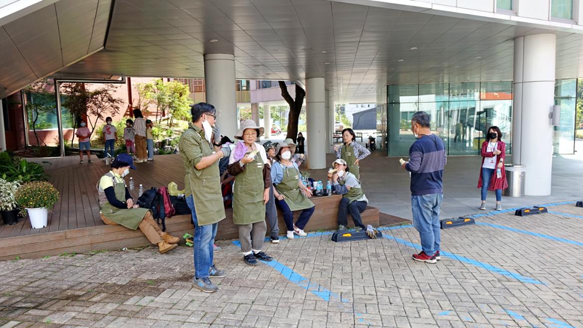 ‘혁신나눔단 조경활동가’는 혁신센터와 50+ 세대의 능력을 활용해 혁신파크의 환경을 개선하고 지역사회 발전에도 기여하는 활동입니다. 지난 8월부터 희망자의 신청을 받았고, 12명의 활동가가 직무교육을 마쳤으며 11월까지 활동을 이어갑니다. 오늘 심은 꽃들은 매주 활동가들이 찾아와 물을 주고 관리할 거예요. 정해진 건 1회지만 아마도 숱하게 발걸음을 할 것 같습니다. 꽃을 심어놓고 자꾸만 오게 될 것 같다는 생각이 들었습니다.