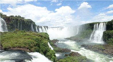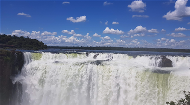 나무로 된 통로를 한참 걸어가니 아스라이 물소리가 들려왔다. 폭포가 곧 나타나리라는 기대에 발걸음이 급해졌다. 멀리 보이는 폭포, 장관이라는 말이 아깝지 않다. 파란 하늘과 초록이 무성한 풀과 나무들, 하얗게 쏟아지는 물줄기. 부서져 흘러내리는 옥빛 물. 제주도의 정방 폭포도 설악산의 토왕성 폭포도 아름답지만 이과수 폭포에는 비길 수 없다.