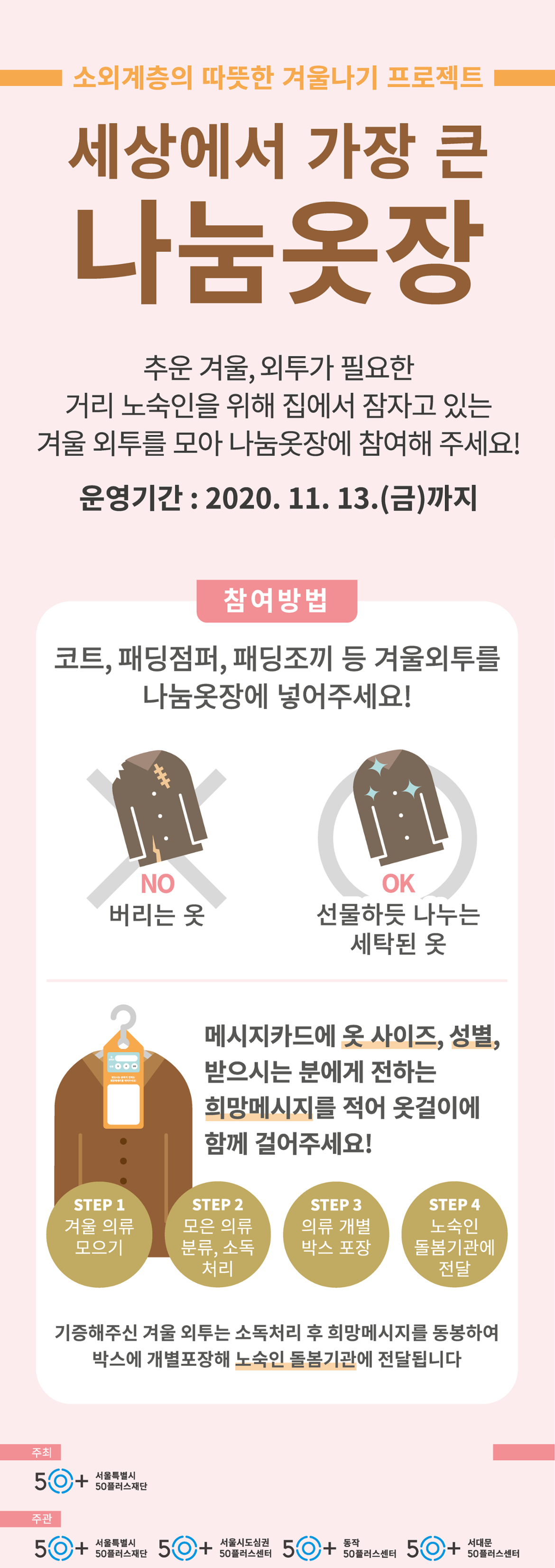 나눔옷장 참여 기관서울시50플러스 서부/중부/남부캠퍼스, 서울시도심권/동작/서대문50플러스센터