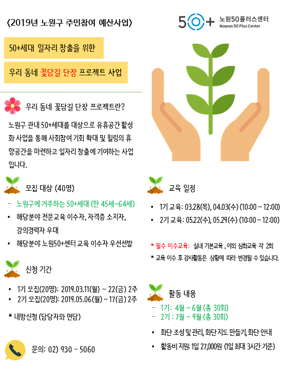 [노원][일자리] 2019 주민참여예산 『꽃담길 단장 프로젝트』사업 참여자 모집