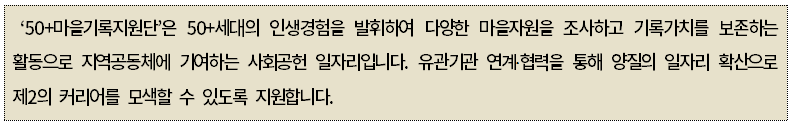 ○ 사업명 : 2019 보람일자리 사업 ‘50+마을기록지원단