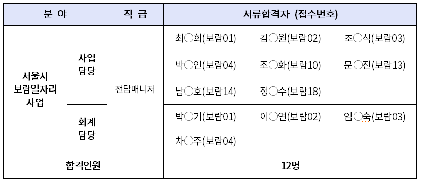 1. 서류심사 합격자(면접대상자) : 12명